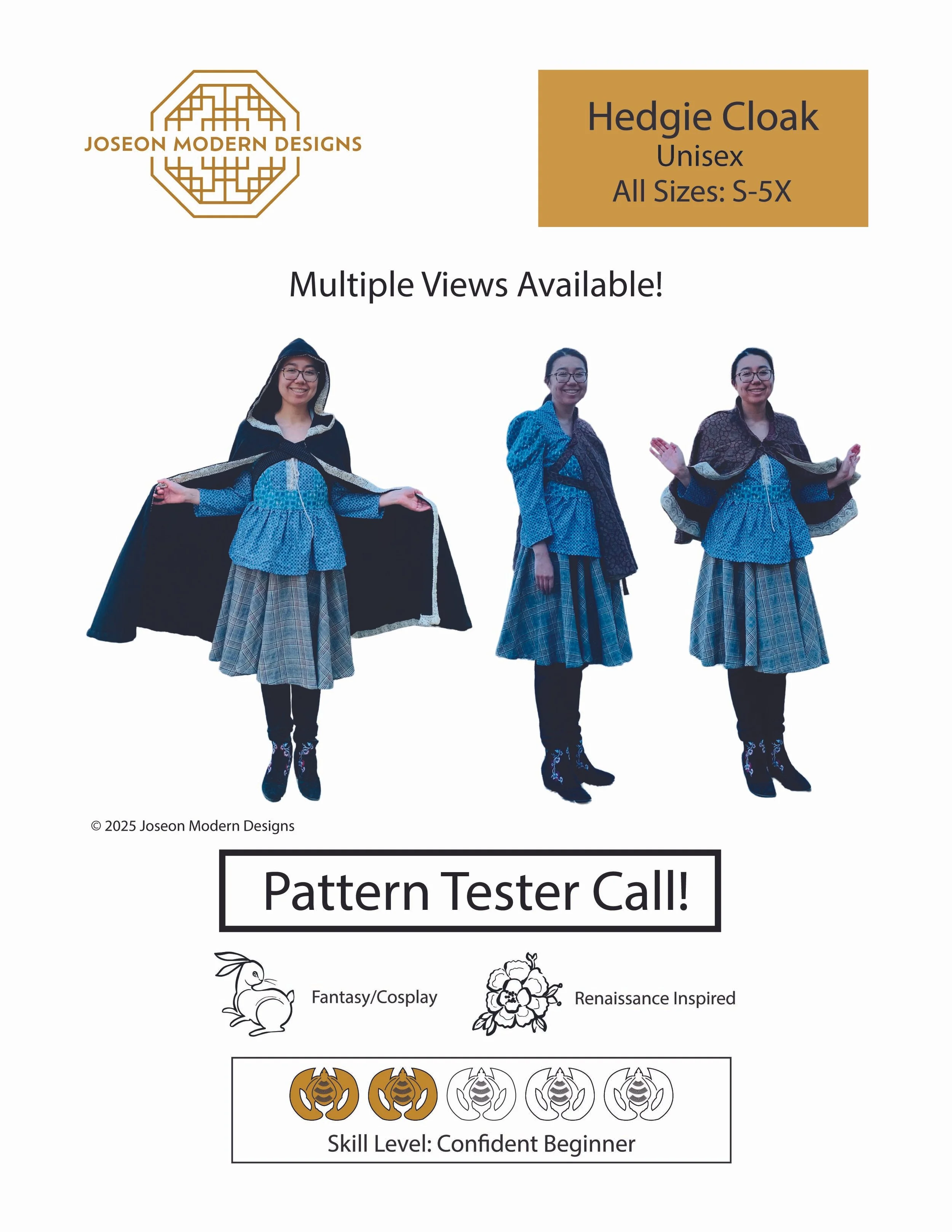 The Hedgie Cloak is inspired by dramatic fantasy and Renaissance-inspired cloaks and dueling capes! Depending on the material and view, the Hedgie Cloak can be styled for a Renfaire, eveningwear, or classic winter outerwear.