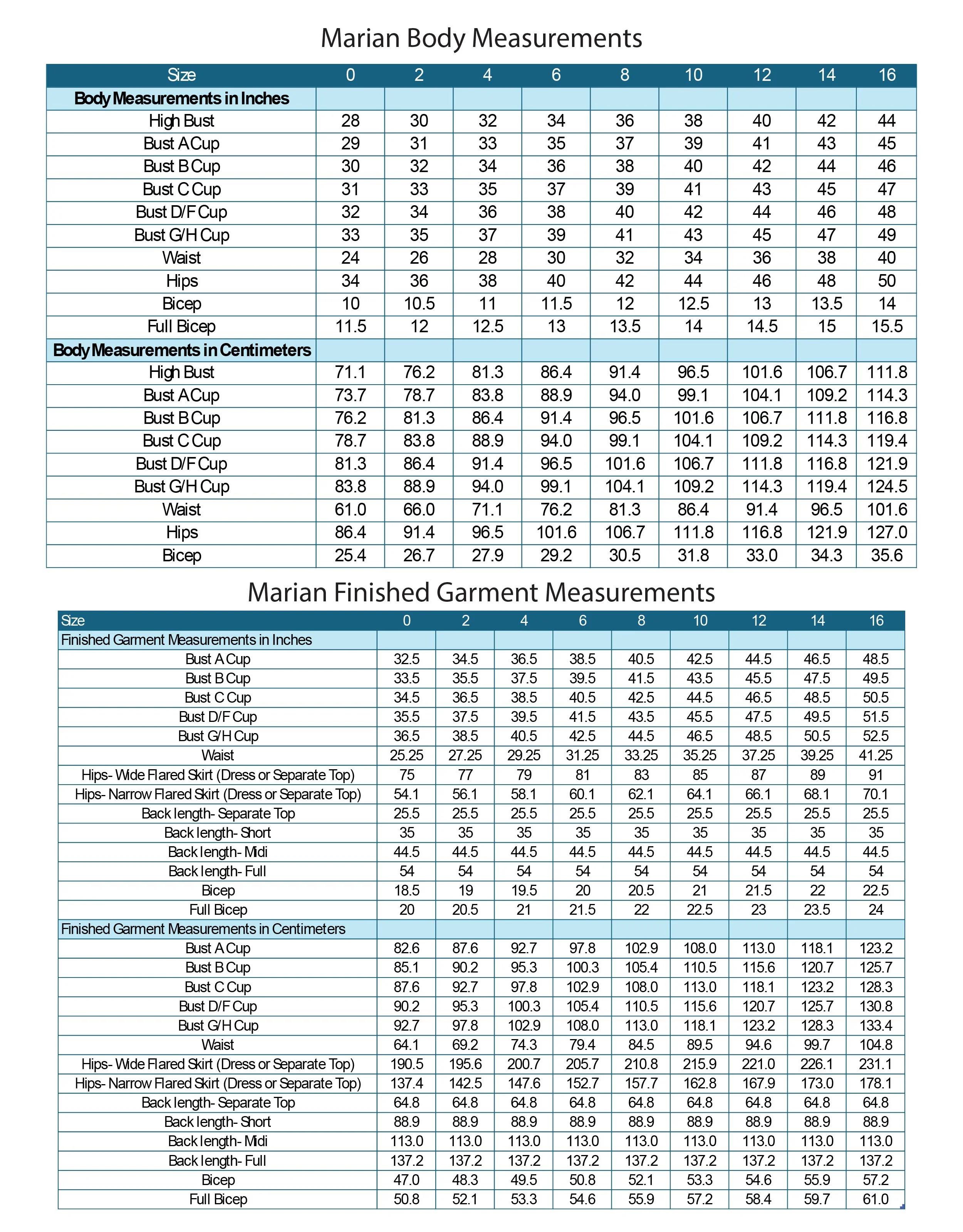 Two separately drafted size ranges are available to test: Marian (0-16) and plus-size friendly Guinevere (14-32), both in cup sizes A-G/H with two bicep options.