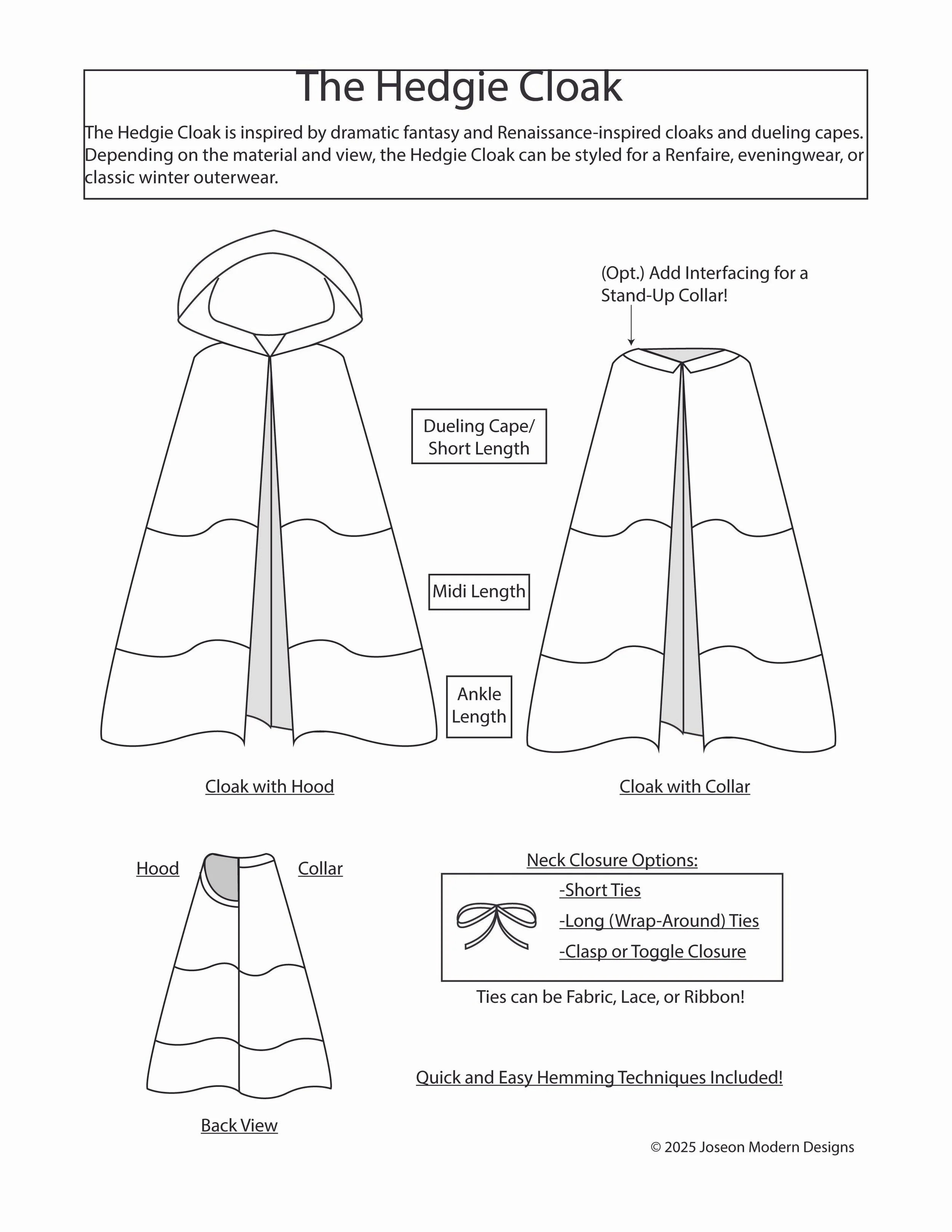 Depending on the material and view, the Hedgie Cloak can be styled for a Renfaire, eveningwear, or classic winter outerwear!