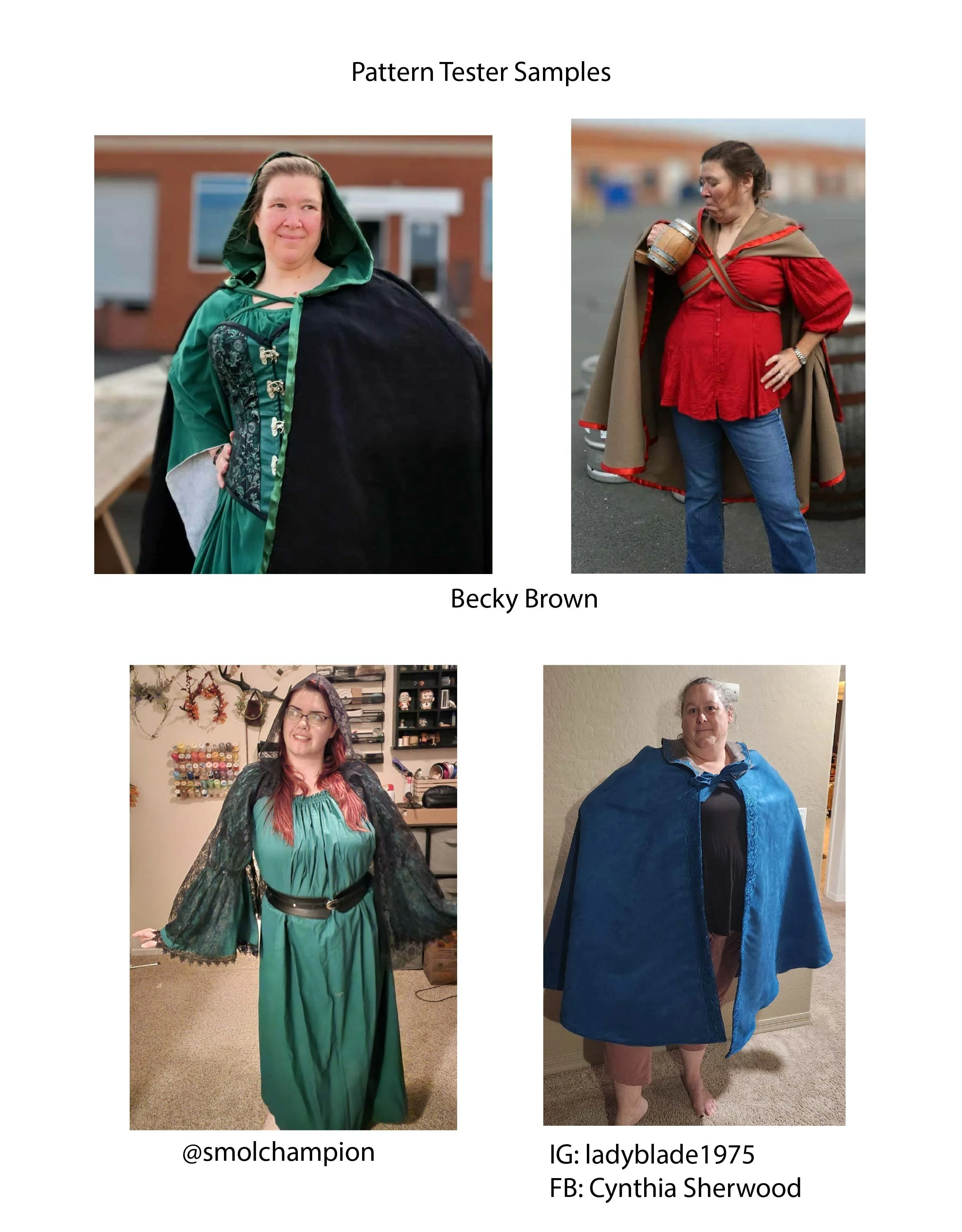 Pattern Tester Samples. Photo Credits go to: Becky Brown, @smolchampion, IG: ladyblade1975, FB: Cynthia Sherwood
