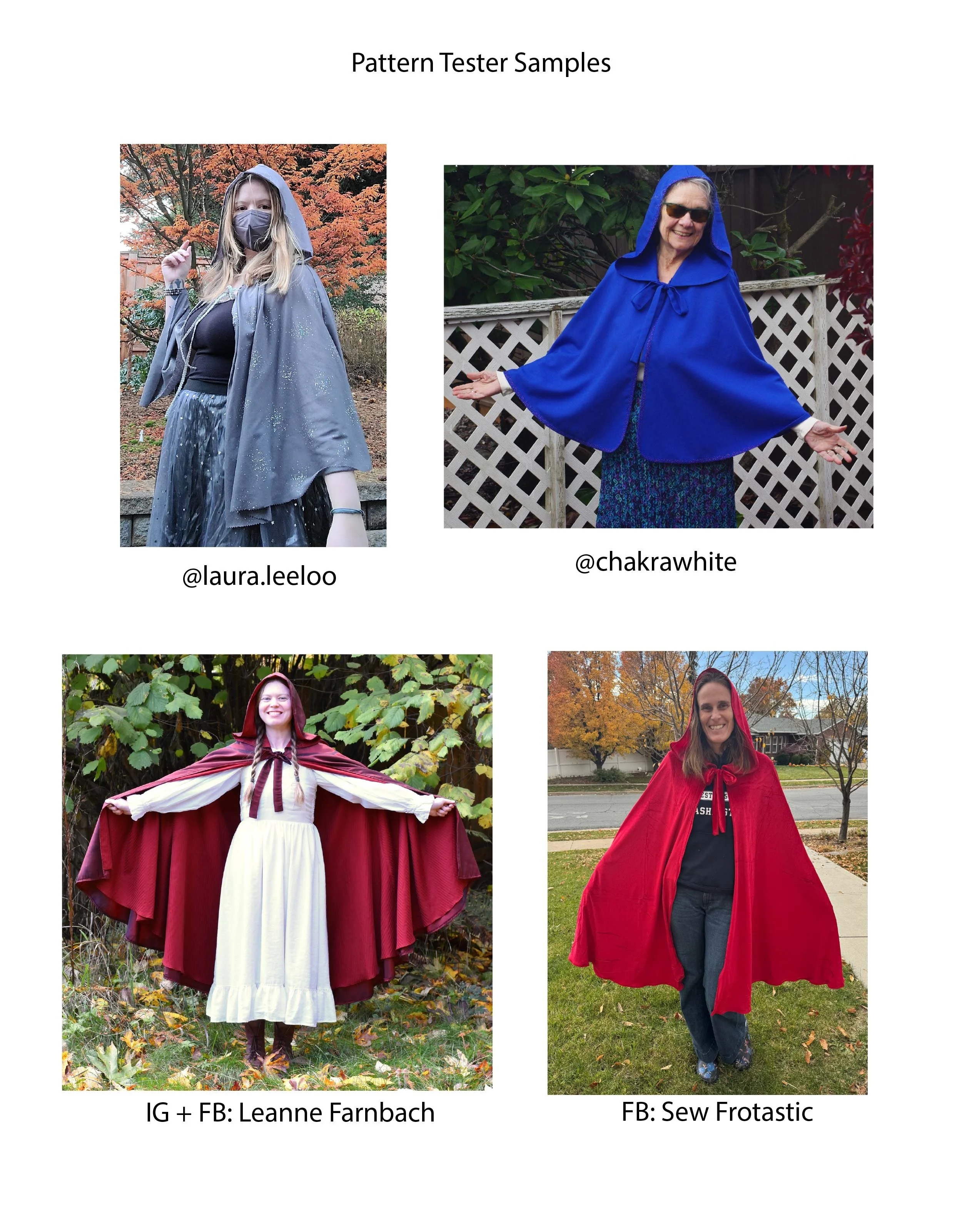 Pattern Tester Samples. Photo Credits go to: @laura.leeloo, @chakrawhite, IG + FB: Leanne Farnbach, FB Sew Frotastic