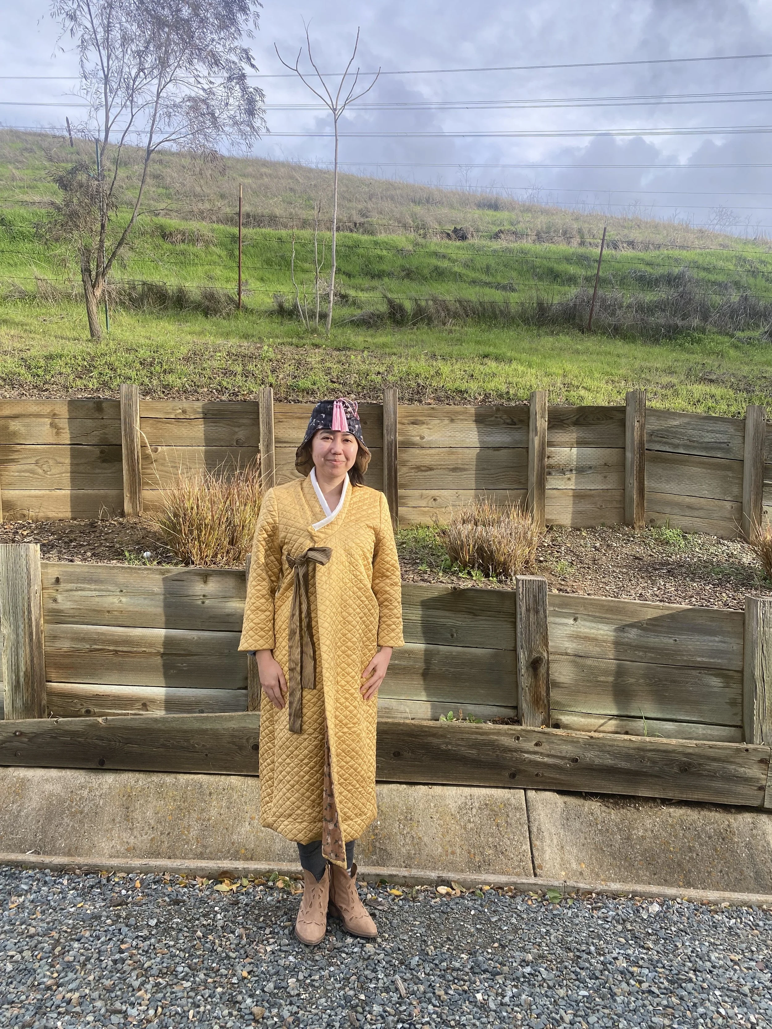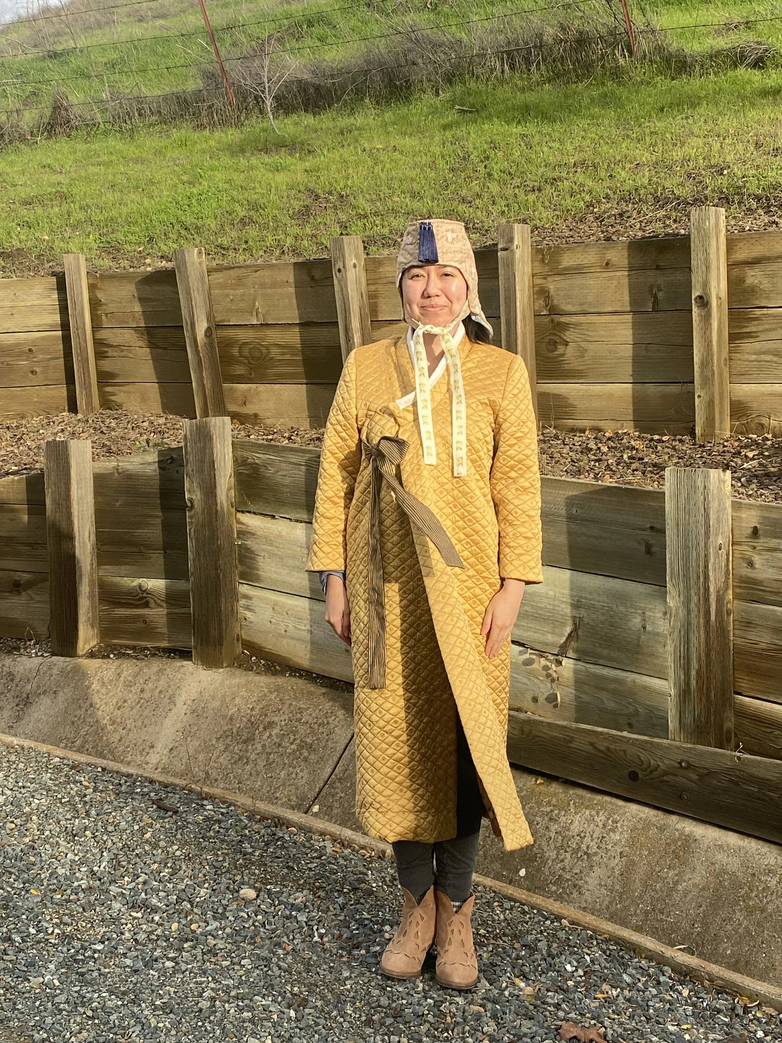 Joseon Modern Designs (JMD) wanted to add a contemporary hanbok twist to the traditional nambawi. A quilted outer fabric provides modern warmth to the Modern Hanbok Quilted Nambawi while simplified construction techniques make for a quick and easy project. Edgestitching replaces the traditional fur trim and optional suggested decorations are provided.